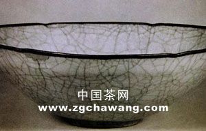 這件青瓷茶碗是南宋時杭州官窯生產(chǎn)的青瓷器。茶碗壁薄胎細(xì),胎色呈紫黑色,釉面開裂,裂片紋冰裂疏密不一,重疊交錯,深淺不同,