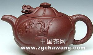 魚化龍,經(jīng)典款式,技法成熟,形器把握十分準(zhǔn)確。用料考究、精工細(xì)制:壺身云紋間忽現(xiàn)龍騰、(另面)魚躍!壺把以龍身及尾,壺蓋