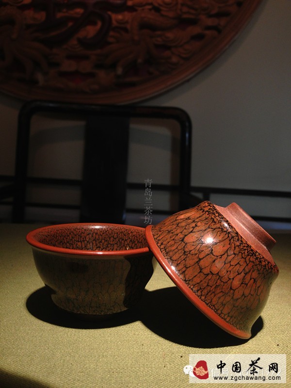 建盞都用正燒,故口沿釉層較薄,而器內(nèi)底聚釉較厚;外壁往往施半釉,以避免在燒窯中底部產(chǎn)生粘窯;由于釉在高溫中易流動(dòng),故有掛釉
