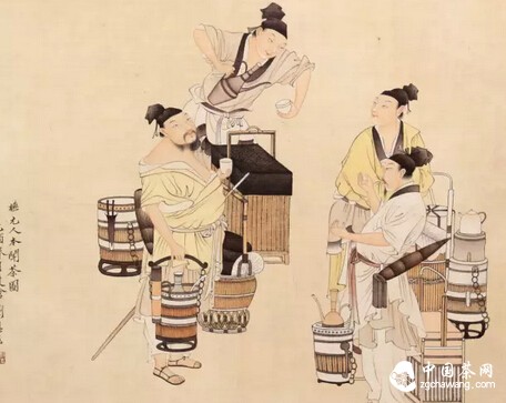 劉凌滄摹元人本斗茶圖茶百戲又稱分茶、水丹青、湯茶、茶戲等等,是一種能使茶湯紋脈形成物象的古茶藝。茶百戲歷史悠久,有關(guān)茶百