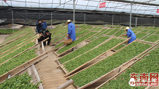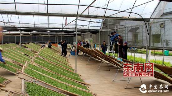 在福鼎市點(diǎn)頭鎮(zhèn)大坪村的“六妙”清潔化萎凋大棚,實(shí)地拍攝采茶員工的晾曬茶葉場(chǎng)面,制茶員工現(xiàn)場(chǎng)演示了曬青、涼青、做青等白茶萎凋過程,攝影師用手中的相機(jī)記錄下了每個(gè)精彩瞬間。