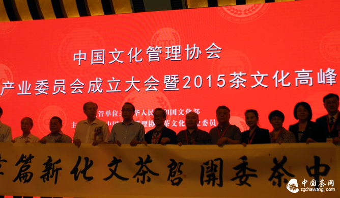 5月23日,中國(guó)文化管理協(xié)會(huì)茶文化產(chǎn)業(yè)委員會(huì)(簡(jiǎn)稱“中茶委”)成立大會(huì)暨2015中國(guó)茶文化高峰論壇在北京釣魚臺(tái)國(guó)賓館舉行。中國(guó)文化管理協(xié)會(huì)常務(wù)副主席梁鑫華、副主席汪建德、陸耀儒、常丕軍,常務(wù)副秘書長(zhǎng)崔麗麗,副秘書長(zhǎng)于玲玲、牛亮及協(xié)會(huì)各專業(yè)委員會(huì)負(fù)責(zé)人,印尼、俄羅斯等國(guó)相關(guān)機(jī)構(gòu)代表,中央及國(guó)家有關(guān)部門、新聞媒體單位、茶文化產(chǎn)業(yè)有關(guān)專家學(xué)者、科研機(jī)構(gòu)、茶農(nóng)茶商代表、合作機(jī)構(gòu)等出席了本次大會(huì)。