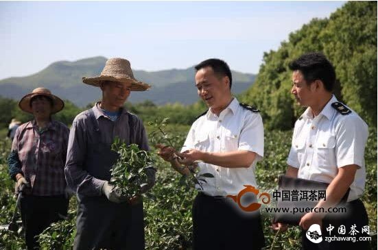 指導(dǎo)茶農(nóng)搞好茶園管理。
