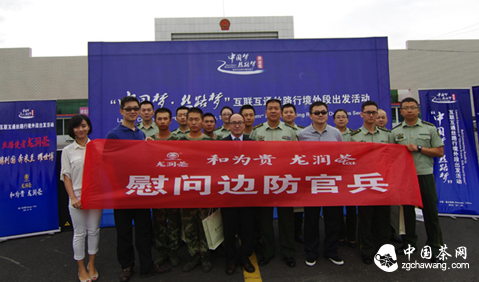 圖為:龍潤(rùn)茶在“中國(guó)夢(mèng) 絲路夢(mèng)”發(fā)車儀式慰問霍爾果斯邊防官兵 人民政協(xié)報(bào)供圖