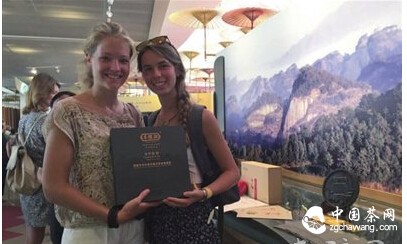 兩名意大利美女在展區(qū)內(nèi)了解羊樓洞青磚茶