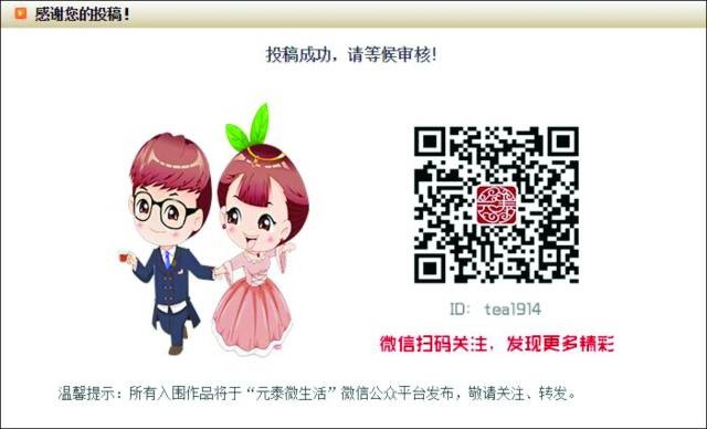 本周入圍優(yōu)秀作品如下:《茶和它的中國性格》、《飲元泰中國紅茶,感受青運(yùn)文化》、《紅茶屋,真愛情》、《品茶感悟人生》、《一杯紅茶的情思》、《我的紅茶生活體驗(yàn)》和《詠元泰紅茶二篇》。