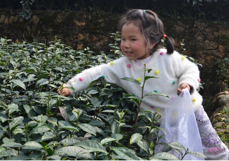 3月5日早上在樂(lè)山市夾江縣三?鎮(zhèn)的茶園里,遠(yuǎn)遠(yuǎn)傳來(lái)一聲清脆的童音問(wèn)候吸引了我的注意。走近看,是個(gè)尚處幼兒園的小朋友,跟著媽媽來(lái)釆茶,開(kāi)朗、活潑、可愛(ài),滿口標(biāo)準(zhǔn)的普通話,詢問(wèn)媽媽才知道,孩子有段時(shí)間隨同在江蘇釆茶的媽媽在當(dāng)?shù)亟邮艿慕逃P」媚飭?wèn)我:“我覺(jué)的我的照片好漂亮!”我順口回答:“我也覺(jué)得你好可愛(ài)!”旁邊的家人笑聲一片。臨別前,回眸一瞥,瞅見(jiàn)個(gè)00后的少女,尚顯青澀,耳朵里戴著耳機(jī),一端連著手機(jī),邊聽(tīng)音樂(lè)邊釆茶。