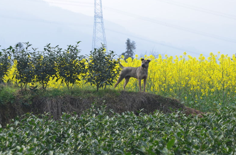3月6日上午雅安市雨城區(qū)大興鎮(zhèn)周公山上,一位頭發(fā)花白的婆婆雙手翻飛提釆鮮嫩的芽尖,詢問(wèn)老人家一天能釆多少茶青,老人伸出兩個(gè)手指頭:“兩斤!”一路跟著我們的小狗,時(shí)不時(shí)回頭停下腳步等待我們。那山、那人、那狗,這久已未見(jiàn)的鄉(xiāng)情,如同這清香一盞茶,相映成趣入畫(huà)里。