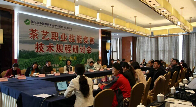 2016年3月27日下午,由中國(guó)茶葉學(xué)會(huì)主辦、中國(guó)茶葉學(xué)會(huì)茶藝專業(yè)委員會(huì)和松陽(yáng)縣人民政府承辦的“茶藝職業(yè)技能競(jìng)賽技術(shù)規(guī)程研討會(huì)”于浙江省松陽(yáng)縣順利舉行。中國(guó)茶葉學(xué)會(huì)副理事長(zhǎng)、中國(guó)茶葉學(xué)會(huì)茶葉感官審評(píng)與檢驗(yàn)專業(yè)委員會(huì)主任委員張定研究員,中國(guó)茶葉學(xué)會(huì)常務(wù)副秘書長(zhǎng)、中國(guó)茶葉學(xué)會(huì)茶藝專業(yè)委員會(huì)主任委員周智修研究員,中國(guó)茶葉學(xué)會(huì)茶藝專業(yè)委員會(huì)副主任委員、漳州科技學(xué)院茶文化研究中心主任蔡榮章教授,中國(guó)茶葉學(xué)會(huì)茶藝專業(yè)委員會(huì)秘書長(zhǎng)、西泠印社社員于良子高級(jí)實(shí)驗(yàn)師,北京老舍茶館掌門人尹智君女士,浙江農(nóng)林大學(xué)關(guān)劍平副教授,安徽農(nóng)業(yè)大學(xué)丁以壽副教授,國(guó)家級(jí)非物質(zhì)遺產(chǎn)名錄“潮州工夫茶”代表性傳承人葉漢鐘先生,福建農(nóng)林大學(xué)孫云教授等17位中國(guó)茶葉學(xué)會(huì)茶藝專業(yè)委員會(huì)委員以及來(lái)自北京、貴州、湖北、河南、遼寧、江蘇、青島、山西、陜西、浙江、四川、天津、安徽等13個(gè)分賽區(qū)的43名專家、學(xué)者參與本次研討。