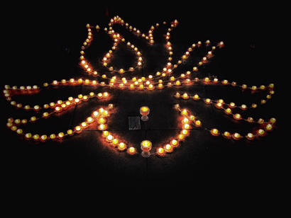 與會茶友佛前供燈,心如蓮花明燈祈愿