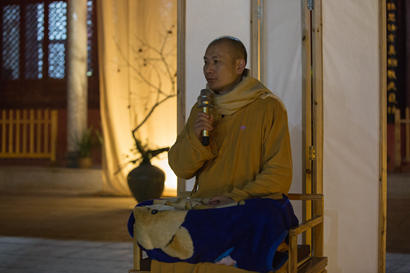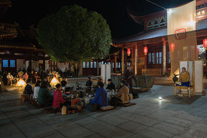 再有晴夜星空,古琴雅樂,書法、瑜伽、花道表演,可謂賞心悅目,幸福同享。茶畢,大家于天王殿前,同放孔明燈,迎接新年,祈愿福慧增長,六時(shí)吉祥,常隨佛學(xué),法喜充滿。