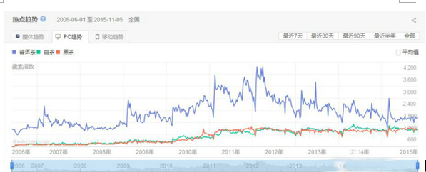 再者從相關(guān)數(shù)據(jù)我們可以明確的看出來,普洱茶2006年到2015年這段期間,每2年時間普洱茶市場就會完成一次價格漲跌周期。下圖中,普洱茶在2011~2013年完成一次價格漲跌后,市場開始平靜,醞釀,從這里就可以預見到了2017年,普洱茶將迎來另一個價格價格上漲周期。