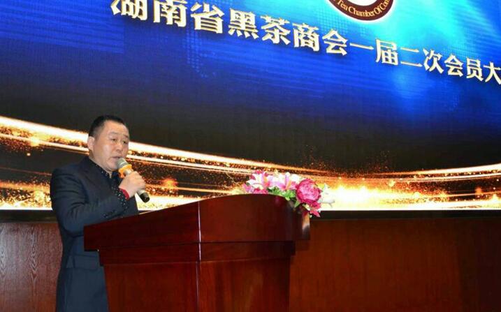 陳社行會(huì)長作湖南省黑茶商會(huì)2016年工作報(bào)告。