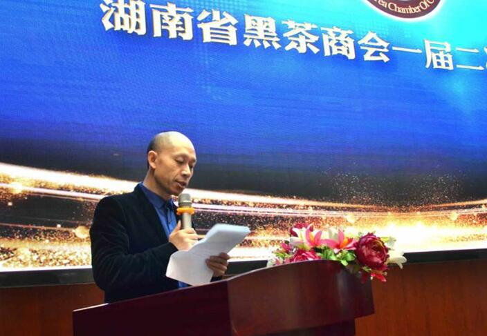 彭接班執(zhí)行會(huì)長宣讀湖南省黑茶商會(huì)2017年工作安排計(jì)劃。