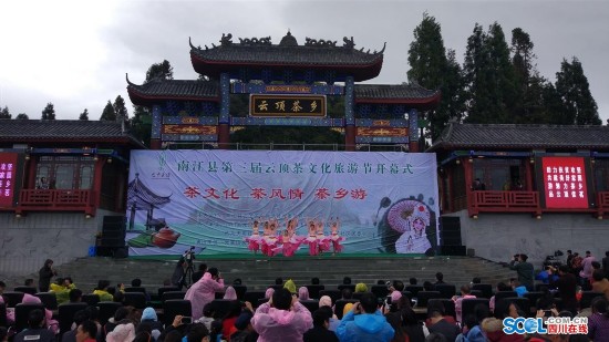16日,天空飄著濛濛細雨的云頂茶鄉(xiāng)國家AAAA級旅游景區(qū)內(nèi),來自省、市的領(lǐng)導(dǎo),省農(nóng)科院茶葉專家及游客數(shù)千人冒雨前來參加南江縣第三屆云頂茶鄉(xiāng)茶文化旅游節(jié)。