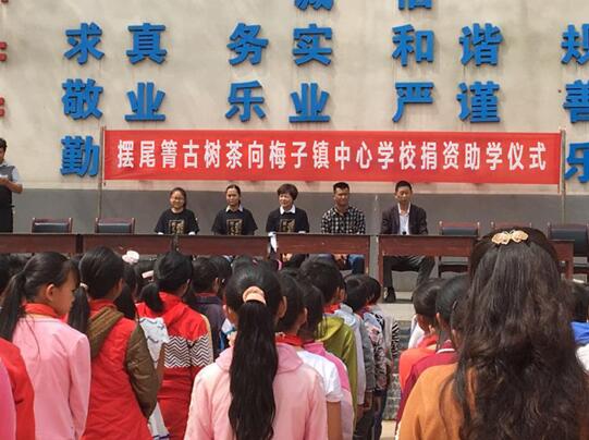 梅子鎮(zhèn)黨委書(shū)記楊繼華、擺尾箐古樹(shù)茶代表等參加了“擺尾箐古樹(shù)茶向梅子鎮(zhèn)中心學(xué)校捐資助學(xué)儀式”。