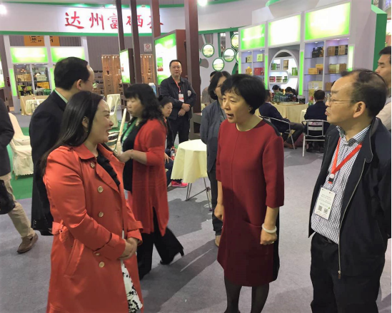 四川省農(nóng)業(yè)廳廳長祝春秀(右二)蒞臨“巴山雀舌”展位指導工作