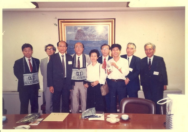▲ 上世紀(jì)80年代末,梧州茶葉進(jìn)出口公司(現(xiàn)梧州中茶)出訪日本,與日本專家團(tuán)合影
