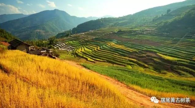 擺尾箐古茶莊園位于北緯23°、東經(jīng)101°,據(jù)《云茶大典》中介紹,低緯度有利于茶葉中碳素的代謝,多酚類積累較多,利于香氣的形成。