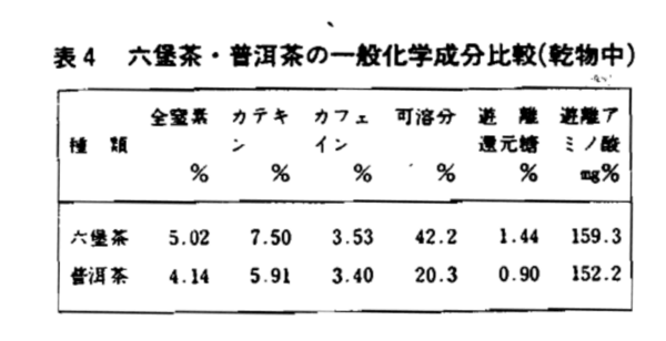 這些結(jié)論表明,此時(shí)六堡茶在品飲上雖敵不過當(dāng)?shù)夭?,但是在理化分析上算是為六堡茶正了名,為黑盒六堡茶后來風(fēng)靡日本奠定了理論基礎(chǔ)。