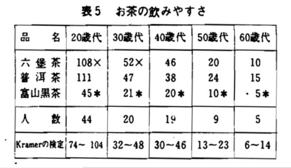 在口味偏好的調(diào)查中,根據(jù)【表5】,在六堡茶、普洱茶與富山黑茶三類茶中,年輕女性更接受本國的富山黑茶。這可能與六堡茶有特殊的香氣,以及剛進(jìn)入日本國內(nèi),品飲口感還未養(yǎng)成有關(guān)。
