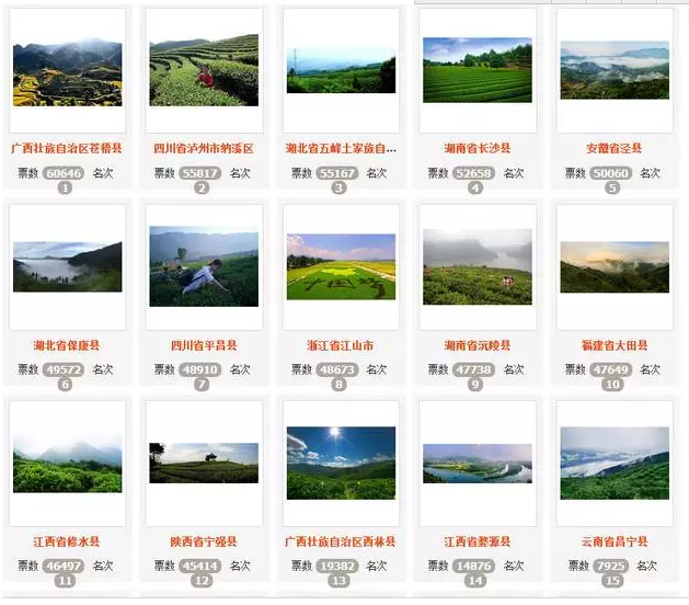 31個茶鄉(xiāng),122家茶園,這是2016年度“全國十大魅力茶鄉(xiāng)”“全國三十座最美茶園”網(wǎng)絡(luò)評選活動的參評單位。而在短短的20天內(nèi),活動共吸引了90多萬茶友參與評審環(huán)節(jié),服務(wù)器多次被擠爆,平均每個參評單位都有近6000的支持率,留言頁面共計1322千頁。