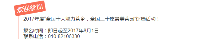 綜上所述,我想已經(jīng)不需要更多的理由促使你報名了,本次評選截止時間為2017年8月,有興趣的茶鄉(xiāng)、茶園可點報名參評~