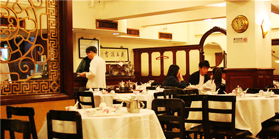 每天同一時間,夾著報紙趨入茶室,深咖色的木椅子,古舊的木吊扇,茶博士和企堂衣著講究,白色對襟唐裝襯上黑褲,和顏悅色拿著大水煲為客人添水。常供香片、六安、普洱、鐵觀音四款香茗,普洱最受茶客愛戴。