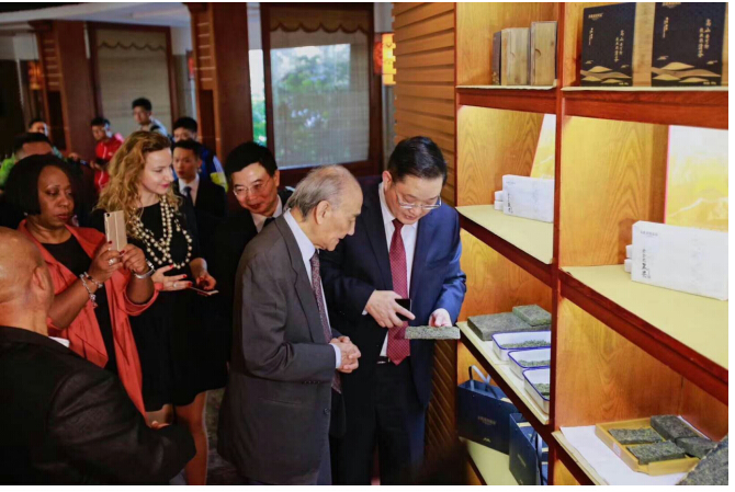 作為中國(guó)茶葉經(jīng)營(yíng)大師和科研大師湖南省茶業(yè)集團(tuán)總經(jīng)理黎明星先生,湖南省茶業(yè)集團(tuán)副董事長(zhǎng)、總工程師吳浩人先生,在“一帶一路大使課堂”上分別向各國(guó)大使介紹了湘茶集團(tuán)的企業(yè)文化、湘茶與一帶一路的歷史淵源、湘茶高科技全金花黑茶“國(guó)獎(jiǎng)茯”的系列科技成果等。各國(guó)大使親臨現(xiàn)場(chǎng)品鑒“國(guó)獎(jiǎng)茯”,觀看茶藝表演 ,參觀了湖南省茶業(yè)集團(tuán)的茶葉博物館、研發(fā)中心、生產(chǎn)車間和茶園,系統(tǒng)了解湘茶文化及生產(chǎn)系列流程,“國(guó)獎(jiǎng)茯”與一帶一路的歷史淵源,共話中華傳統(tǒng)茶文化的傳承與創(chuàng)新。