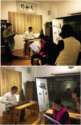 太和坊創(chuàng)始人孔德輝先生,帶領(lǐng)優(yōu)秀學(xué)員彈唱《關(guān)山月》、《秋風(fēng)辭》、《陽(yáng)關(guān)三疊》等古琴曲,將現(xiàn)場(chǎng)氣氛帶向高潮,品茗撫琴,盡情享受這段靜謐的時(shí)光。