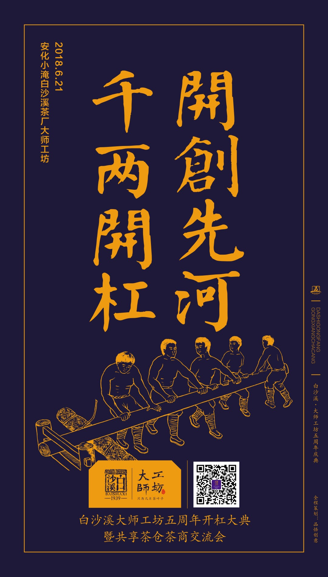 這次白沙溪大師工坊讓杠爺們的技藝展現(xiàn)在世人眼前,讓世人有機(jī)會一睹杠爺踩制千兩黑茶之景,想看嗎?就來湖南安化白沙溪大師工坊,一睹大師工坊開杠大典!2018年6月21日,等候您的光臨!