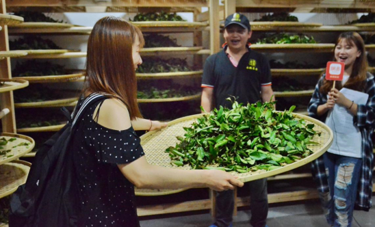 搖青是茶葉制作工序中的一道重要工序,我們在吳師傅的制茶工廠車間里看到了工人老師傅搖茶的身影,技術熟練且精湛。旅游達人們也紛紛參與其中,體驗搖茶的奧秘。感受到手工搖青的精髓和背后的不易。