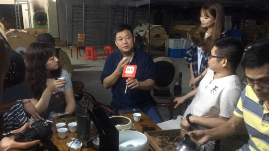 巖茶的制作過程比較復雜,除了現(xiàn)場能夠看到的曬青、搖青等流程。還需要經過2-3個月的烘焙,才能得到成品“坑爹”茶?,F(xiàn)場吳永鵬師傅拿出了1泡“坑爹”的半成品(未進行烘焙)給各位達人品嘗。