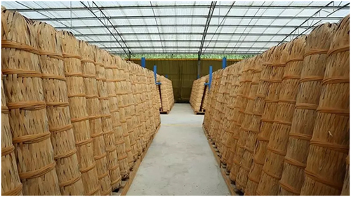安化是山水之鄉(xiāng)。當(dāng)?shù)貪O民打魚用的魚地籠,常年在水中浸泡,卻少有腐爛,經(jīng)久耐用。農(nóng)民雨天穿的蓑衣,包粽子用的蓼葉,可以很好的防潮,這是千兩茶包裝和形態(tài)的起源。