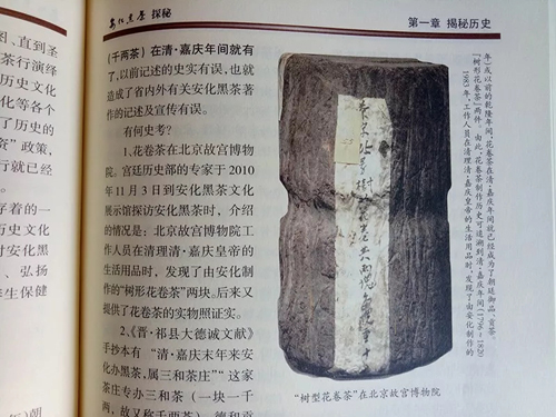 經(jīng)安化黑茶業(yè)內(nèi)人士,走訪伍湘安老師之后才明白,故宮博物院對珍藏的樹型茶貼條,確是寫的“普洱”,《安化黑茶探秘》一書中的照片,是經(jīng)過技術(shù)處理的,將“普洱”二字改成了“花卷”。