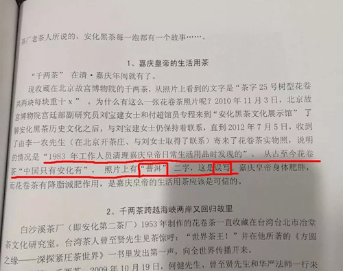 把嘉慶帝遺物“安化黑茶”寫成“普洱”