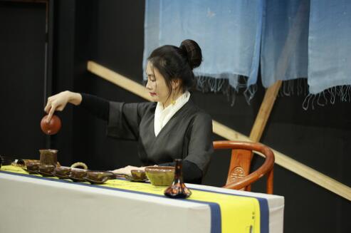 此外,今年度臺(tái)灣頂級(jí)工藝秉持著「手感工藝、溫暖生活」的主軸,將享茶空間搬入展場(chǎng)。以家的休憩空間為想象,搭配茶席上質(zhì)感精細(xì)的工藝器皿,及靜謐優(yōu)雅、層次有致的藍(lán)染茶掛背景,而茶藝師泡茶行茶儀式貫穿整體茶空間,在展場(chǎng)一隅打造茶香氤氳、舒適自在的生活空間;就像生活中靜心享受的,舉目是充滿手感溫度、職人投注意念創(chuàng)作的工藝品,而俯拾間品茶執(zhí)起的是符合人體使用的杯壺,細(xì)細(xì)品嘗,萃取生活時(shí)光點(diǎn)滴。
