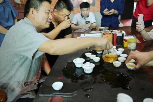 在參觀過(guò)程中,有人就目前鐵觀音的市場(chǎng)提出質(zhì)疑:“現(xiàn)在的鐵觀音不好喝,銷(xiāo)量都不行了”,作為高級(jí)評(píng)茶師的吳昌山老師,默默為大家沏上一壺茶,并示意品嘗,只見(jiàn)茶湯橙紅清澈,入口甘潤(rùn)順滑,溫和醇厚。在大家紛紛稱(chēng)道茶品之時(shí),吳昌山說(shuō)道,“這是50年的陳年老鐵,不是鐵觀音不行,而是市場(chǎng)上的以次充好壞了招牌。”看制茶工藝、品陳年老鐵,吳昌山為一行人上了生動(dòng)的一課,讓大家對(duì)鐵觀音這個(gè)知名品牌有了更深的了解。