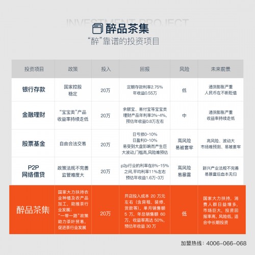 醉品茶集:“醉”靠譜的投資項(xiàng)目