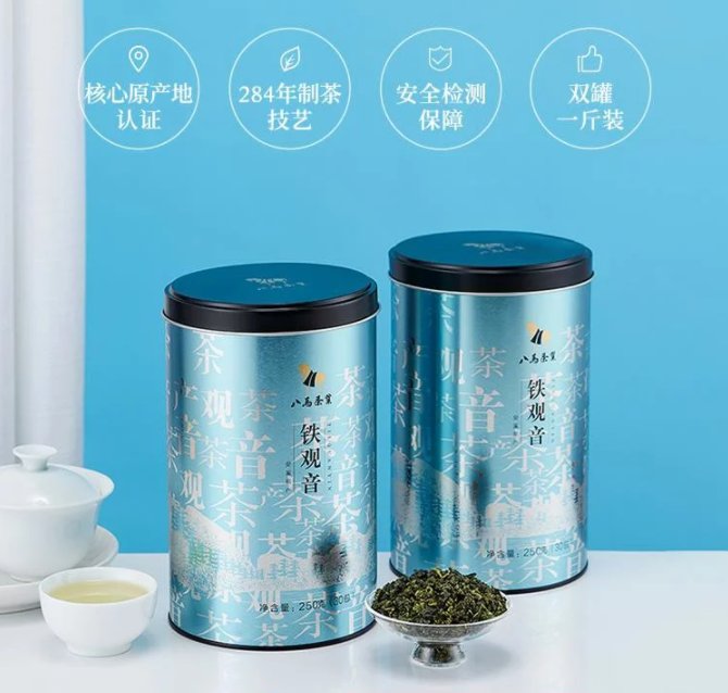 這款茶嚴格遵循傳承近300年的鐵觀音非遺制茶技藝,工序考究、嚴苛準則,以匠心制好茶。其干茶顆粒緊結,色澤砂綠;泡開后,湯色黃綠有回甘,葉片鮮亮有活力。品嘗一口,滋味鮮爽,蘭香悠揚,是茶友大愛的清香型觀音韻。在包裝上,這款茶采用大氣雙罐,并霸氣裝滿一斤,自飲送禮兩相宜。另外,精工打造的進口馬口鐵茶罐,可以防潮鎖鮮,堪稱儲茶利器;獨立真空茶包,也讓沖泡更便捷。