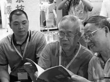 原貴州省省長林樹森(右)與鄔老(中)品茶論道。