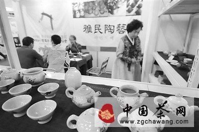 昨日,韓國(guó)陶瓷茶具在茶博會(huì)上參展。當(dāng)日,由福建省人民政府、中國(guó)茶葉流通協(xié)會(huì)和海峽兩岸茶業(yè)交流協(xié)會(huì)等單位聯(lián)合主辦,以“中國(guó)茶·中國(guó)夢(mèng)”為主題的第四屆中國(guó)茶都安溪國(guó)際茶業(yè)博覽會(huì)暨2013泉州茶文化旅游節(jié)在福建安溪開(kāi)幕?;顒?dòng)旨在攜手全國(guó)各產(chǎn)茶縣,共同推動(dòng)中華茶產(chǎn)業(yè)發(fā)展。