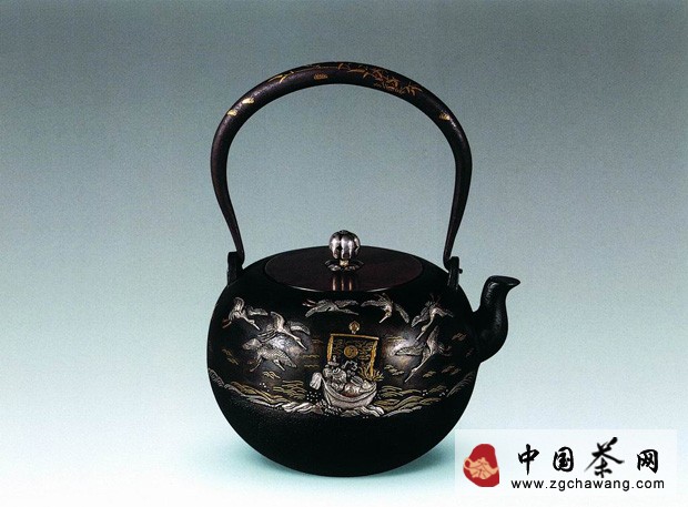 最后,由于中國文化根深蒂固的影響,在諸多日本老鐵壺中都有著中國書法繪畫和茶文化的影子。例如:以壺身刻鑄的漢字名句賞評;以梅、蘭、竹、菊、松、山水、山居、庭林、漁翁、樵夫、小橋流水、近江八景、海川、社寺、亭臺、閣榭等表現(xiàn)人文、山水、風景的美麗圖案等,它們與帶有富士山等圖案的日本味道濃厚的鐵壺相比,更加受到中國市場歡迎。