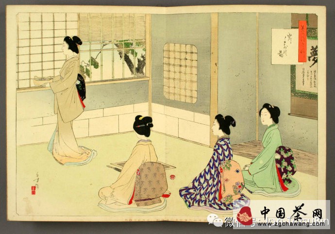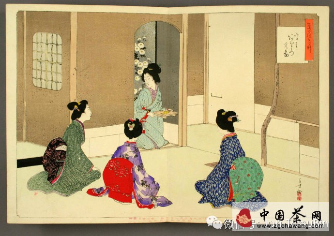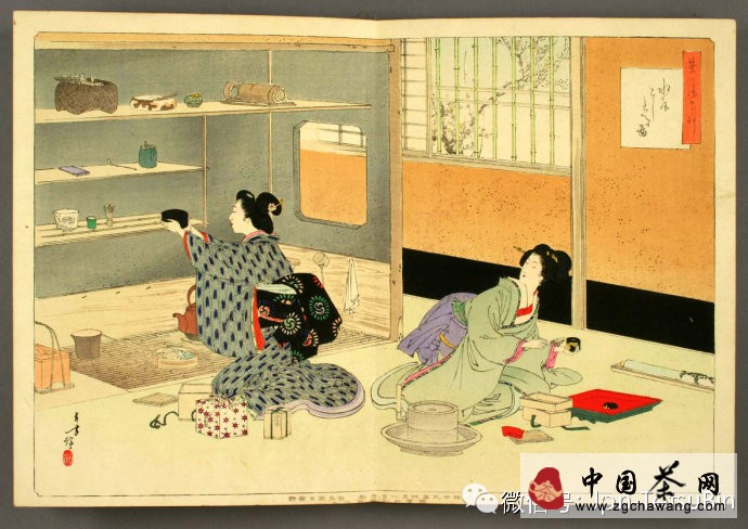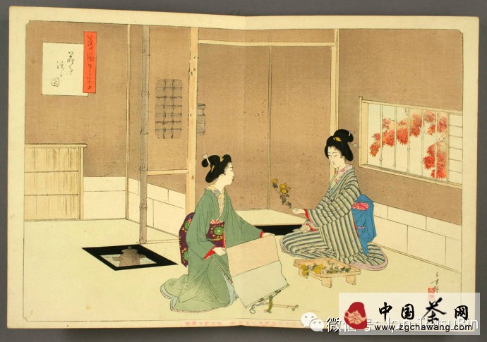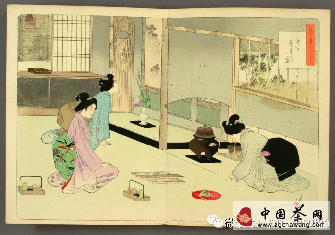 濃茶之后,添炭,再點薄茶。茶室的面積在四疊半以上的,稱為“廣間”;四疊半以下的,稱為“小間”。