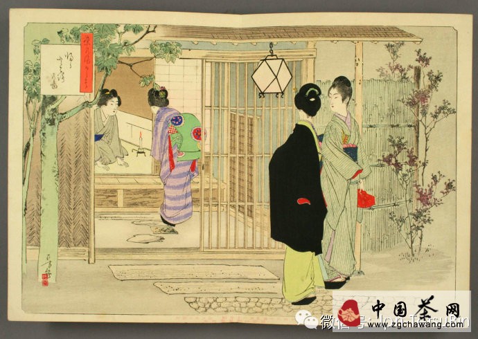 “初座迎客”。茶事開始前,主人必先在茶室的格子門外跪迎賓客。一般來說,第一位進入茶室的客人是正客,最為尊貴。茶事分“初座”、“后座”兩段,中間要到茶庭休息一陣,謂之“中立”。