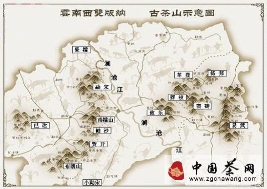 后起的八大茶山,位于瀾滄江以西,從北往南,分別為:曼糯、勐海勐宋、南糯山、帕沙、賀開、布朗山、景洪勐宋;巴達在西部。