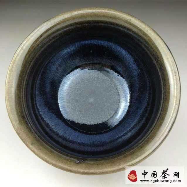 第五類:曜變。“曜變”一詞至遲在《禪林小歌》中才有記載。成書于十六世紀(jì)前期的《君臺觀左右?guī)び洝分?,把建盞珍品劃分為若干等級,其中將“曜變”列為“建盞之至高無上的神品,為世界所無之物。”所謂“曜變”,就是在黑色的底釉上聚集著許多不規(guī)則的圓點,圓點呈黃色,其周圍煥發(fā)出以藍(lán)色為主的曜眼的彩虹般的光芒,故得名。曜斑廣布于建盞的內(nèi)壁,并隨所視方向的移動而變化,垂直觀察時呈藍(lán)色,斜看時閃金光,仿佛置身于浩蕩宇宙之中,周圍是無數(shù)璀璨的繁星,令人心馳目眩。由于“曜變”燒成難度極大,故傳世甚少,僅日本國收藏四件,其中三件被定為“國寶”級文物,一件被定為重要文物。