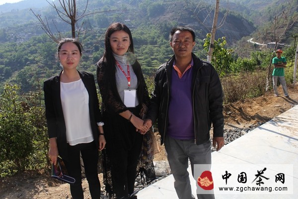 北大茶學班負責人安心(中)與 錦繡村書記(右) 講角員(左)合影
