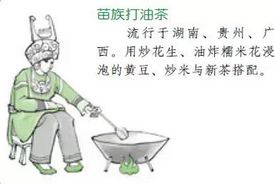 苗 族、侗族的打油茶 打油茶是流行于桂北侗、壯、苗多民族聚居地的一種民間飲茶習(xí)俗,家家戶戶都喝打油茶。