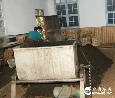 黑磚、花磚:兩者加工大致相同。先將毛茶進(jìn)行篩分、除雜,進(jìn)行原料拼配。再經(jīng)過稱茶、蒸茶、機(jī)壓、冷卻、退磚、驗(yàn)磚、烘干、包裝等工序:其中進(jìn)烘房烘干時間約10天左右,逐漸升溫,出烘時溫度可達(dá)70℃。